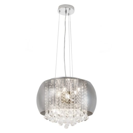 Króm színű fém vázas függeszték lámpa üveg kristály dekoros füstszínű üveg búrával.