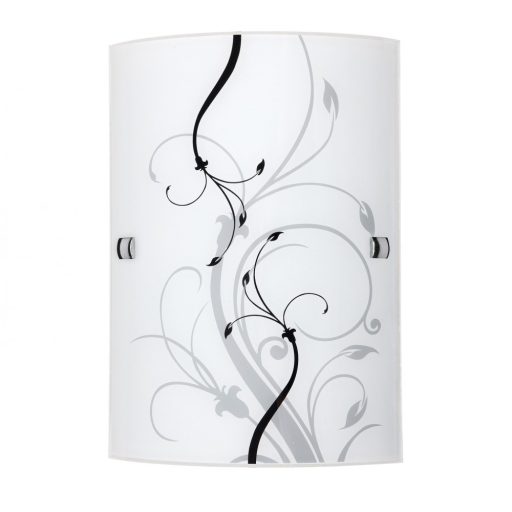Modern stílusú fali/mennyezeti lámpa, fém vázzal, és szürke-fekete mintás üveg búrával.