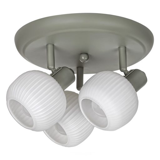 Szürke színű fém vázas spot lámpa fehér színű barázdált üveg búrával, állítható fejjel.