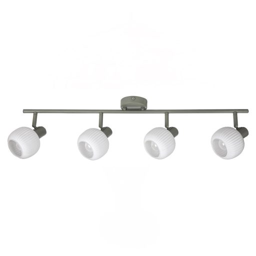 Szürke színű fém vázas spot lámpa fehér színű barázdált üveg búrával, állítható fejjel.