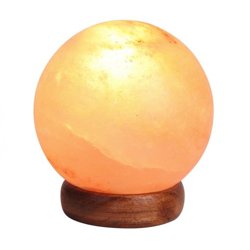 Gömb alakú sólámpa, barna színű fa alappal, vezetékre szerelt kapcsolóval.