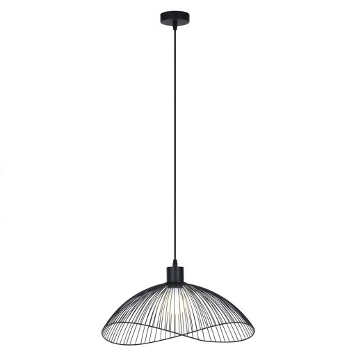 Matt fekete színű fém vázas függeszték lámpa fémdrót búrával.