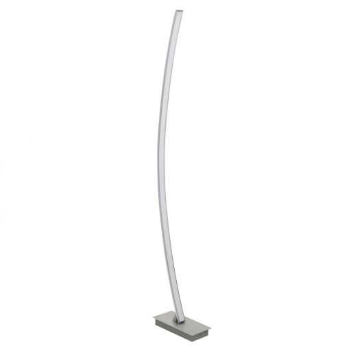 Modern stílusú állólámpa, súrolt alumínium vázzal, műanyag betétes búrával, beépített LED fényforrással, vezetékre szerelt kapcsolóval.