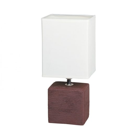 Modern stílusú, szögletes asztali lámpa, wenge színű kerámia testtel és natúr színű textil lámpa ernyővel. A lámpa vezetékre szerelt kapcsolóval rendelkezik.