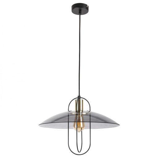Fekete színű fém vázas függeszték füst színű üveg búrával.