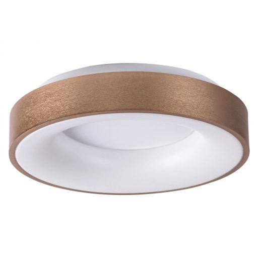 Elegáns megjelenésű mennyezeti lámpa fehér színű fém vázzal, arany keretes fehér színű akril búrával, beépített LED fényforrással.