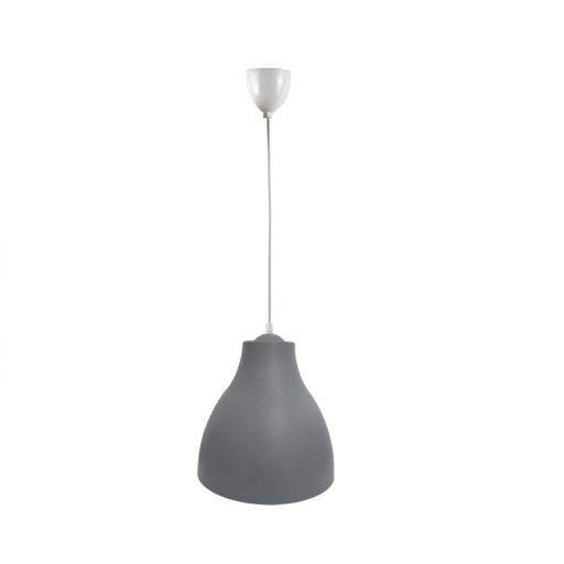 Letisztult megjelnésű függeszték fehér színű műanyag függesztő elemmel és szürke színű búrával.