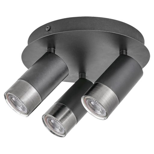 Matt fekete színű fém spot lámpa ezüst gyűrű dekoros, mozgatható fejjel, GU10-es foglalattal.