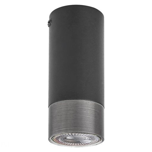 Matt fekete színű fém mennyezetre szerelhető lámpa ezüst gyűrű dekoros búrával, 1db GU10-es fix foglalattal.