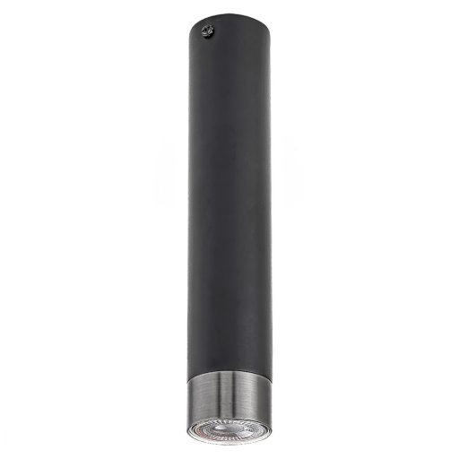 Matt fekete színű fém mennyezetre szerelhető lámpa ezüst gyűrű dekoros búrával, 1db GU10-es fix foglalattal.