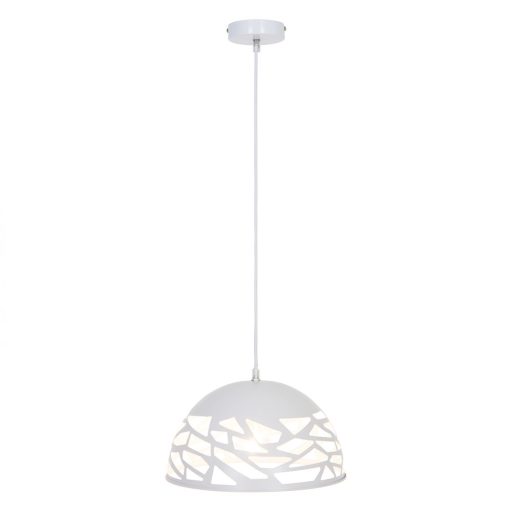Matt fehér színű fém vázas függeszték perforált fém búrával.