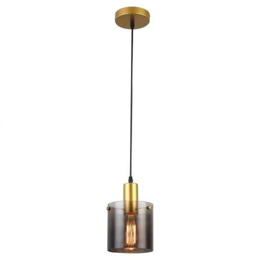 Arany színű fém vázas függeszték fentről lefelé sötétedő füstszínű áttetsző üveg búrával.