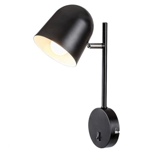 Matt fekete színű fém fali lámpa billenthető fejjel, 1db E14-es foglalattal, lámpatesten elhelyezett kapcsolóval.