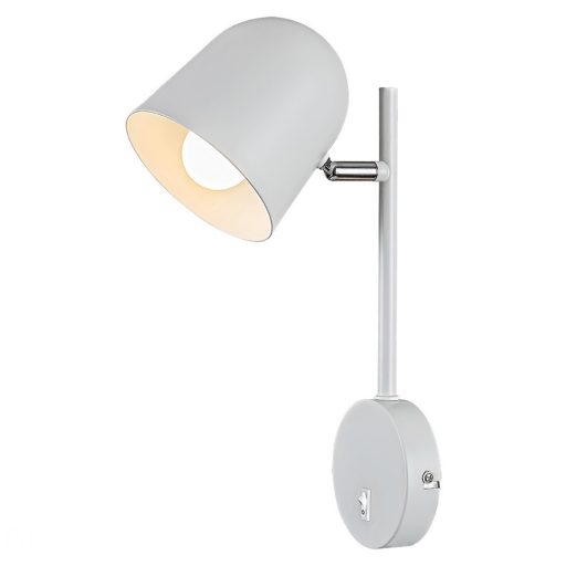 Matt fehér színű fém fali lámpa billenthető fejjel, 1db E14-es foglalattal, lámpatesten elhelyezett kapcsolóval.