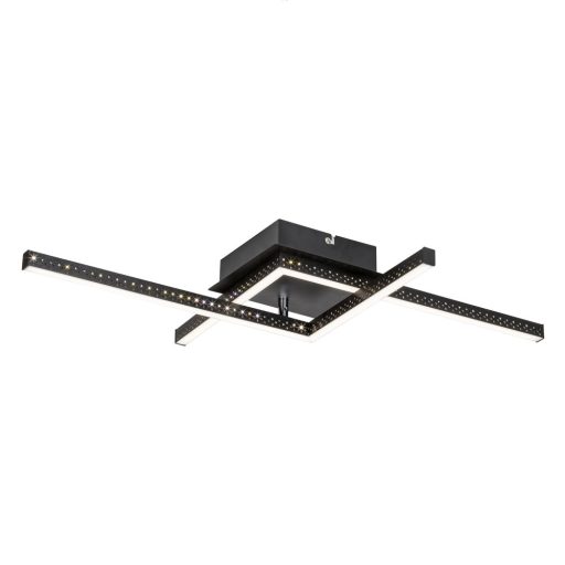 Matt fekete színű fém vázas mennyezeti lámpa opálos műanyag betéttel, 23W természetes fehér színhőmérsékletű, beépített LED fényforrással.