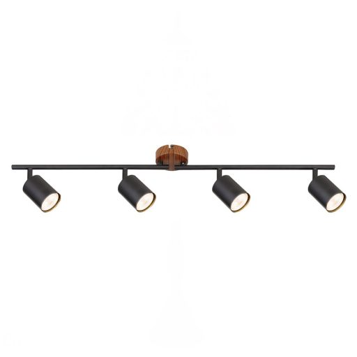 Az indusztriális stílus képviselői közé tartozó Edmund négyes spotlámpa nappalink vagy hálószobánk stílusos kiegészítője lehet. A kerek, festett tölgy dísztalphoz fémből készült tartórúd kapcsolódik, ehhez vannak erősítve a mozgatható lámpafejek. A fekete, henger alakú búrák egy-egy GU10-es foglalatot rejtenek magukban. A lámpa négy darab, egyenként legfeljebb 25W teljesítményű fényforrással használható. Ízlésünktől függően választhatunk hozzá meleg vagy természetes fehér fényű fényforrásokat. Ha a hálószobában kap helyet az Edmund, meleg fehér fényű fényforrásokkal használva elősegítheti a meghitt, otthonos hangulat kialakítását. A négyes spotlámpa méretei a következők: szélessége 79cm, magassága 13cm, egy-egy búra átmérője 5,5cm, a lámpa faltól mért távolsága 17cm, beépítési átmérője 8cm. Ezt a modellt fényforrások nélkül szállítjuk.