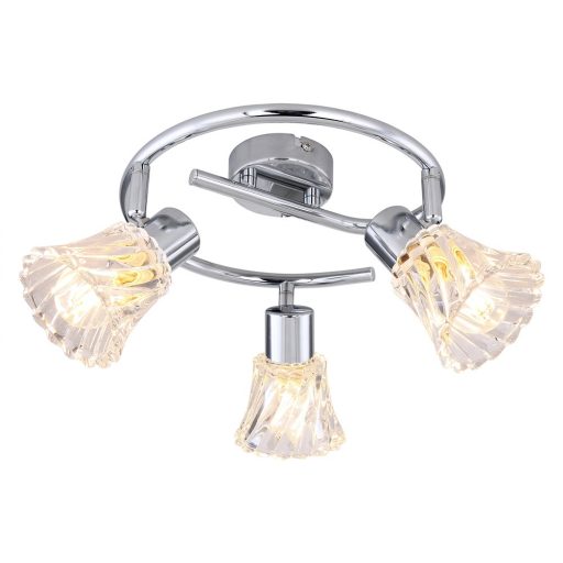Króm színű fém vázas spot lámpa átlátszó, elegáns, csavart üveg búrával, állítható fejjel.