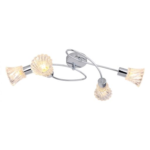 Króm színű fém vázas mennyezeti lámpa átlátszó, elegáns, csavart üveg búrával.
