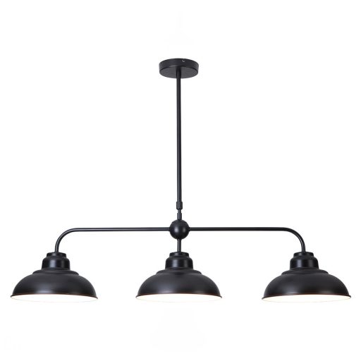 Az indusztriális stílus képviselői közé tartozó Dragan hármas függeszték nappalink, étkezőnk vagy hálószobánk berendezésének jellegzetes kiegészítője lehet. A fémből készült, matt fekete lámpatestet szélesen elterülő, ernyő formájú búrák egészítik ki, amelyek belül fehér színt kaptak. A lámpa kisméretű, kerek dísztalp segítségével rögzíthető a mennyezetre, a lámpafejek a széles tartórúdon sorban egymás mellett helyezkednek el. A Dragan három darab, egyenként legfeljebb 60W teljesítményű fényforrással használható, a foglalatok típusa E27. Ha a hálószobában kap helyet a lámpa, meleg fehér fényű fényforrásokat ajánlunk hozzá, amelyek segítenek meghitt, otthonos hangulatot teremteni. A Dragan hármas függeszték méretei a következők: szélessége 100cmm, egy-egy búra átmérője 25cm, a lámpa belógása 70-107cm között állítható, beépítési átmérője 12cm. Ezt a modellt fényforrások nélkül szállítjuk.
