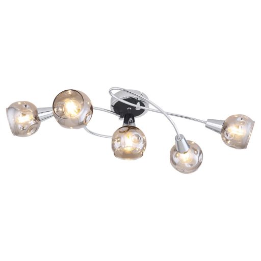 Króm színű fém vázas mennyezeti lámpa füstszínű üveg búrával.