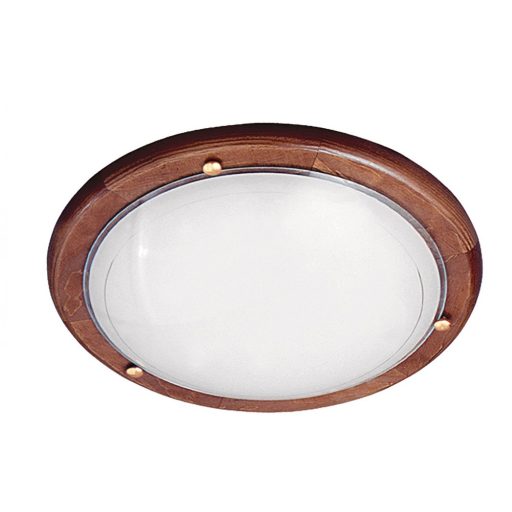 Klasszikus stílusú, Ufo mennyezeti lámpa, fém vázzal, tölgy színű fa alappal, fehér színű opál üveg búrával.