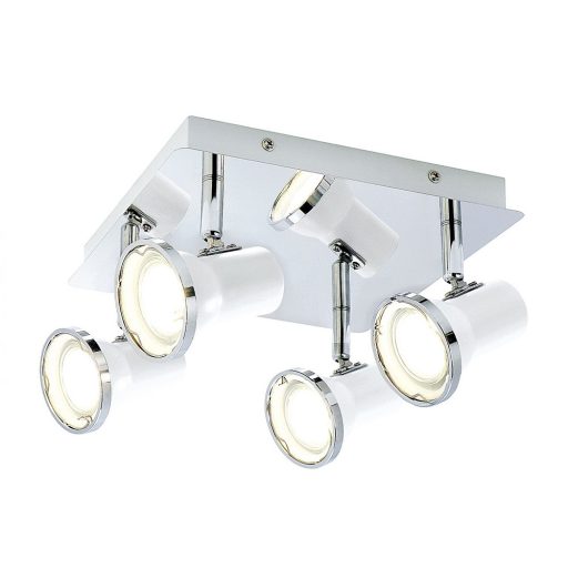 Modern megjelenésű fürdőszobai lámpa hozzáadott energiatakarékos LED izzókkal. A mennyezeti lámpa 36 cm széles, fehér és króm színkombinációjú fém szerkezet és pozícionálható lámpabúrával, IP44-es védettséggel. A csomagban található LED izzók A+ energiaosztály besorolású és 3x 4,5W teljesítmény mellett 3x 430 lumen fényerőt és 4000 Kelvines, természetes fehér színű fényt kínálnak. Izzócsere esetén a lámpatest GU10-es foglalatkialakítású, 3x max. 50W teljesítményű izzókkal használható.
