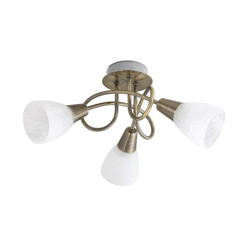A Jenna hármas mennyezeti lámpát a hagyományos stílus kedvelőinek ajánljuk. Az energiatakarékos fényforrásokkal használható modell az antik bronz lámpatestet alabástrom üveg búrával ötvözi, melyet csavart dizájn egészít ki. A mennyezeti lámpa átmérője 360 mm, mennyezettől mért távolsága 210 mm. A Jenna mutatós darabja lehet nappalink vagy hálószobánk berendezésének. A lámpa 3 db, legfeljebb 40 W teljesítményű izzóval használható, a foglalat típusa E14. A kellemes, meghitt hangulat megteremtéséhez válasszunk hozzá meleg fehér színű izzókat. Ezt a modellt fényforrás nélkül szállítjuk.