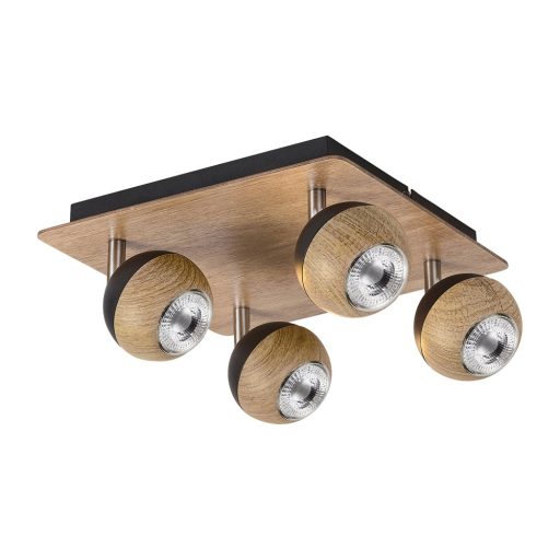 A fémből készült Arthur négyes spotlámpát elsősorban azoknak ajánljuk, akik otthonuk berendezésekor előnyben részesítik a természetet idéző kiegészítőket. A fekete és tölgy színben készült, indusztriális stílusú mennyezeti lámpa gömbölyded formáival tetszetős darabja lehet a nappali, a hálószoba vagy egy tágas előszoba berendezésének. A négy lámpafej igény szerint állítható, attól függően, hogy a szoba mely részébe szeretnénk koncentrálni a fényt. Ez az Arthur modell négy darab, legfeljebb 35 W teljesítményű fényforrással használható, a foglalatok típusa GU10. Ha kellemes, meghitt hangulatot szeretnénk, válasszunk hozzá meleg fehér színű fényforrásokat. A lámpa szögletes dísztalpának mérete 260x260 mm, mennyezettől való távolsága 135 mm. Az Arthur négyes spot lámpát fényforrás nélkül szállítjuk.