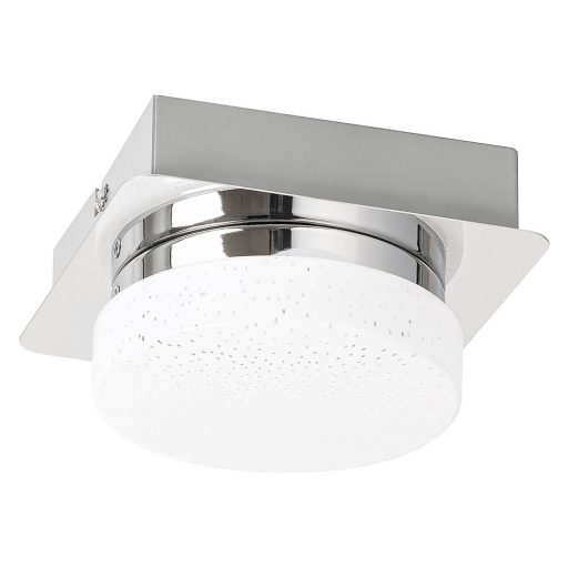 A kisméretű, csillogó effekttel készült, kerek Hilary mennyezeti lámpa igazán hangulatos kiegészítője lehet modern nappalink vagy hálószobánk berendezésének. Méretéből adódóan ez a modell különösen jól mutat, ha egymás mellé többet is felszerelünk belőle. A fémből és műanyagból készült, króm és opál színű lámpa beépített, energiatakarékos LED fényforrással rendelkezik. Az A+ energiaosztályba tartozó fényforrás teljesítménye 5 W, fényereje 400 lumen, élettartama mintegy 20000 óra. Színhőmérséklete 4000 K, ennek megfelelően természetes fehér fénnyel világítja meg környezetét. A lámpa szögletes dísztalpának mérete 130x130 mm. A Hilary mennyezeti lámpára .