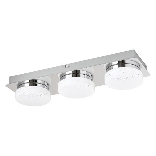 A csillogó effekttel készült Hilary hármas mennyezeti lámpa igazán hangulatos kiegészítője lehet modern nappalink vagy hálószobánk berendezésének. A fémből és műanyagból készült spotlámpa króm színű testét opál búrák egészítik ki, melyek alatt három darab beépített, energiatakarékos LED fényforrás rejtőzik. Az A+ energiaosztályba tartozó fényforrások teljesítménye összesen 15 W, fényerejük 1200 lumen, élettartamuk mintegy 20000 óra. Színhőmérsékletük 4000 K, ennek megfelelően természetes fehér fénnyel világítják meg környezetüket. A lámpa szögletes dísztalpának hossza 430 mm. A Hilary hármas mennyezeti lámpára .