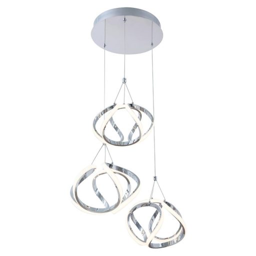 A Palmira hármas függeszték mutatós darabja lehet modern nappalink berendezésének. A fémből és műanyagból készült, króm színű modell látványosságát a három, szabálytalan gömböt formázó lámpafej adja, melyek eltérő magasságban függnek. A Palmira beépített, energiatakarékos LED fényforrásának teljesítménye 50 W, fényereje 3400 lumen. Az A energiaosztályba tartozó fényforrás színhőmérséklete 3000 K, azaz meleg fehér fénnyel világítja meg környezetét. A lámpa ezáltal az otthonos, meghitt hangulatot erősíti az adott helyiségben. A kerek dísztalppal szerelt függeszték átmérője 500 mm, belógása 1500 mm. Erre a látványos modellre .