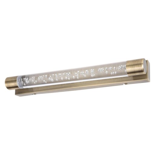 Az Abbey fürdőszobai fali lámpa a klasszikus stílus képviselői közé tartozik. Az antik bronz színű lámpatestet átlátszó búra egészíti ki, melyen keresztül láthatóvá válik a lámpa buborékos dizájnja. Az Abbey a mosdó, illetve a tükör fölé szerelve meleg fehér fénnyel világítja meg a fürdőt, otthonos, kellemes hangulatot teremtve. A fémből és műanyagból készült fali lámpa két darab beépített, energiatakarékos LED fényforrással rendelkezik. Az A+ energiaosztályba tartozó fényforrások teljesítménye 10 W, fényerejük 900 lumen, színhőmérsékletük 3000 K, élettartamuk pedig nem kevesebb, mint 30000 óra. Az Abbey fali lámpa IP44-es védettséggel rendelkezik, amely védelmet garantál legfeljebb 1 mm átmérőjű tárgyak behatolása, valamint bármilyen irányból fröccsenő víz ellen. A lámpa méretei a következők: hossza 400 mm, faltól mért távolsága 50 mm. Az Abbey fürdőszobai fali lámpára .