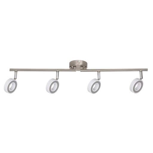 Modern megjelenésű mennyezeti spotlámpa beépített energiatakarékos LED izzókkal. 70 cm széles, króm színű fémből készített lámpatest és pozícionálható, műanyag lámpabúrák IP20-as védettséggel. A beépített LED izzók A+ energiaosztályúak, teljesítményük 4x 4,5W, amelyhez 4x 400 lumen fényerő társul. Színhőmérséklete természetes fehér (4000 Kelvin). A lámpatestben a izzó nem cserélhető.