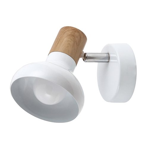 Skandináv stílusú fali spotlámpa 1 db foglalattal. 13 cm magas, fehér és bükk színkombinációjú fém lámpatest pozícionálható lámpabúrával, IP20-as védettséggel. A lámpatest E-14-es foglalatkialakítású, max. 40W teljesítményű, energiatakarékos izzóval is használható.
