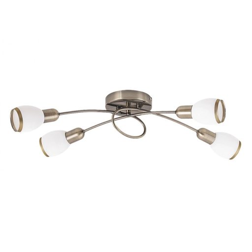 Modern stílusú mennyezeti lámpa, bronz színű fém vázzal, bronz dekoros, opál üveg búrával.