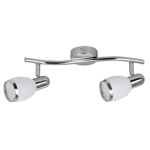 Modern stílusú fali spot lámpa, króm színű fém vázzal, króm dekoros, opál üveg búrával. A lámpa állítható fejjel rendelkezik.