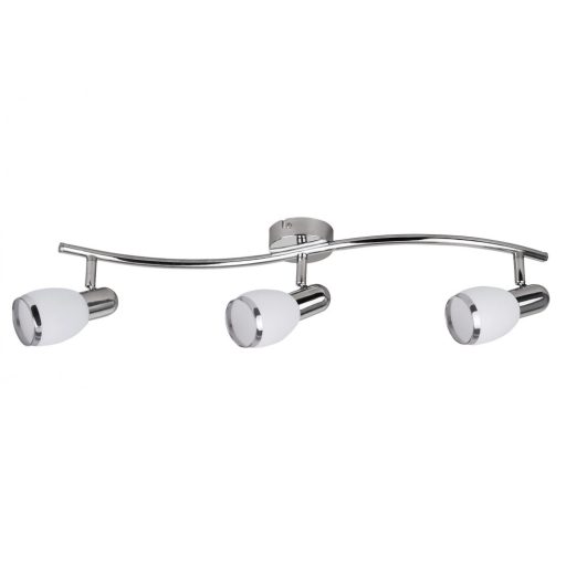 Modern stílusú mennyezeti spot lámpa, króm színű fém vázzal, króm dekoros, opál üveg búrával. A lámpa állítható fejjel rendelkezik.