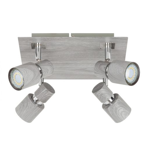 Modern stílusú mennyezeti spot lámpa, szürke tölgy színű fém vázzal és búrával. A lámpa állítható fejjel rendelkezik.