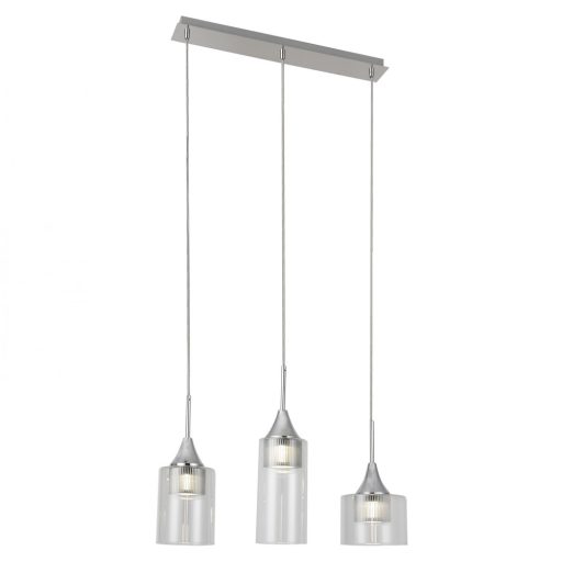 Modern stílusú, króm színű fém vázas lámpa áttetsző, különböző méretű üveg búrákkal, beépített LED fényforrással.