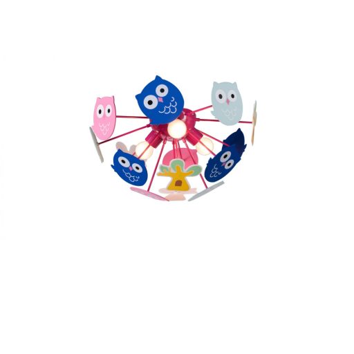 Bagoly dekoros gyerek szobába illő lámpa. A lámpa rózsaszín fém vázzal és műanyag bagoly dekoros búrával rendelkezik.