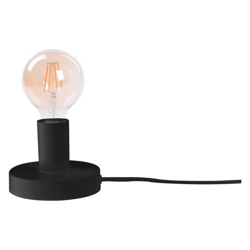 Fekete színű fém búra nélküli asztali lámpa vezetékre szerelt kapcsolóval.