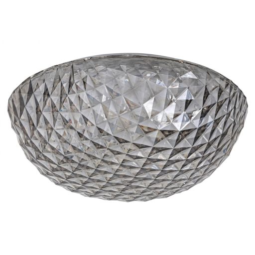 Egyedi megjelenésű mennyezeti lámpa fém vázzal és szürke színű mintás búrával, beépített LED fényforrással.