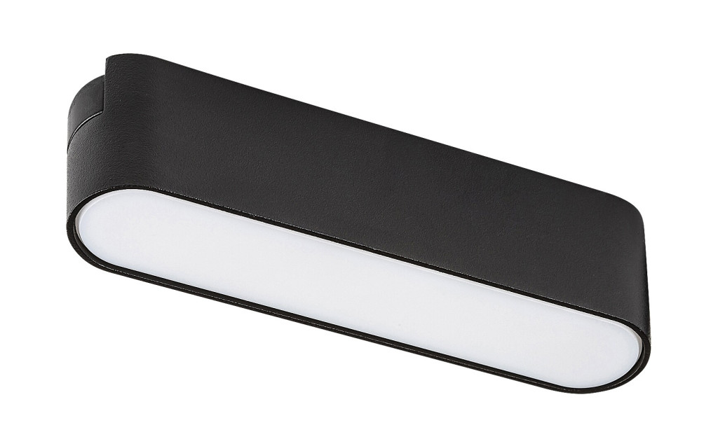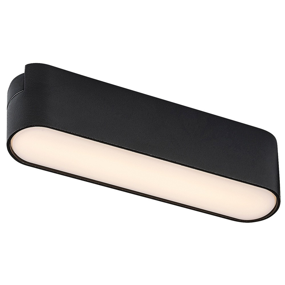 Fekete színű alumínium vázas, fehér műanyag búrás sínre szerelhető lámpa meleg fehér színhőmérsékletű beépített LED fényforrással Rábalux LiTrack sínrendszeres lámpacsaládhoz.
