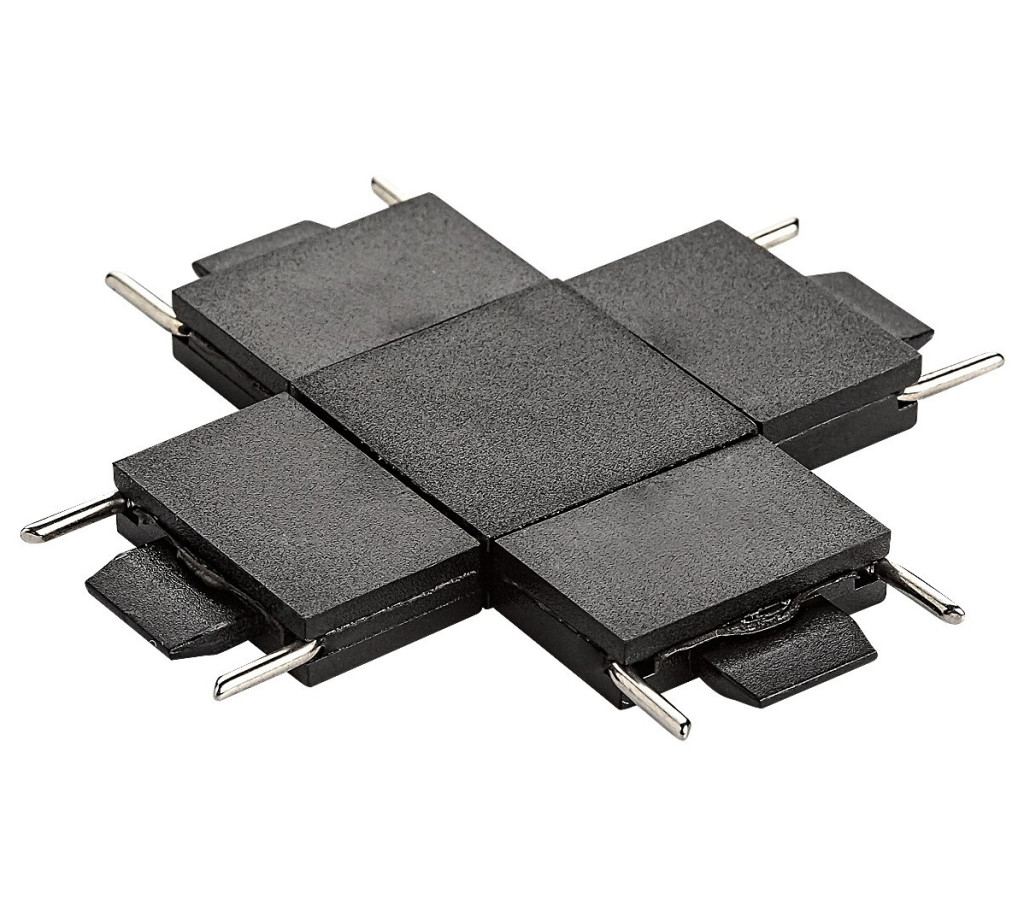 Kereszt alakú síntoldó Rábalux LiTrack sínrendszerhez. A „+” alakú csatlakozó segítségével a síneket „T”, „L” vagy „+” alakban összeillesztve változatos sínrendszereket hozhatunk létre, és az egyes lámpákat szükség szerint bármikor áthelyezhetjük a sínrendszeren belül.