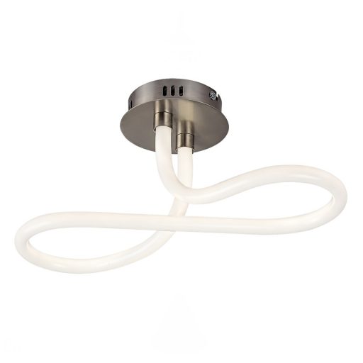 Szatinált króm színű fém vázas mennyezeti lámpa cső szerű akril búrával, beépített, természetes fehér színhőmérsékletű LED fényforrással.