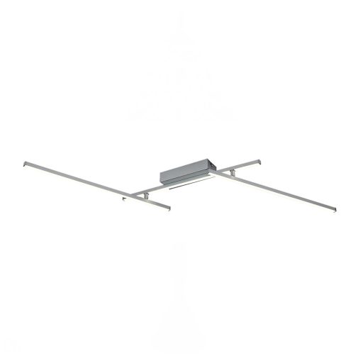 Ezüst színű fém vázas mennyezeti lámpa műanyag betétes búrával, mozgatható karral, természetes fehér színhőmérsékletű beépített LED fényforrással. Teljesen nyitott karokkal a lámpa maximális hossza 114cm.