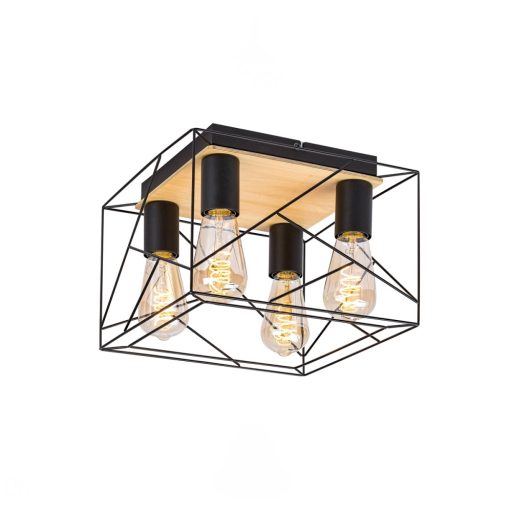Világos fa és fekete színű fémrács mennyezeti lámpa E27-es foglalattal. A lámpa dekor fényforrással mutat a legjobban, ami nem tartozék.