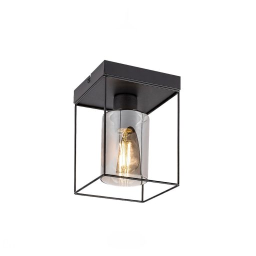 Fekete színű fém vázas mennyezeti lámpa henger alakú, füstös üveg búrával, E27-es foglalattal. A lámpa dekor, vagy filament fényforrással mutat a legjobban. A lámpát fényforrás nélkül szállítjuk.