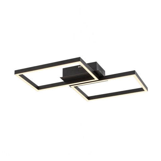 Matt fekete színű fém vázas mennyezeti lámpa műanyag betétes búrával, beépített LED fényforrással. A lámpához távirányító tartozék mely segítségével állítható a lámpa fényereje és színhőmérséklete(2700-6500K). A lámpa továbbá éjszakai fény és memória funkcióval is rendelkezik. A lámpa a plafon felé színváltós LED fényforrással is világít.