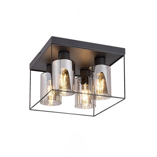 Fekete színű fém vázas mennyezeti lámpa henger alakú, füstös üveg búrával, E27-es foglalattal. A lámpa dekor, vagy filament fényforrással mutat a legjobban. A lámpát fényforrás nélkül szállítjuk.